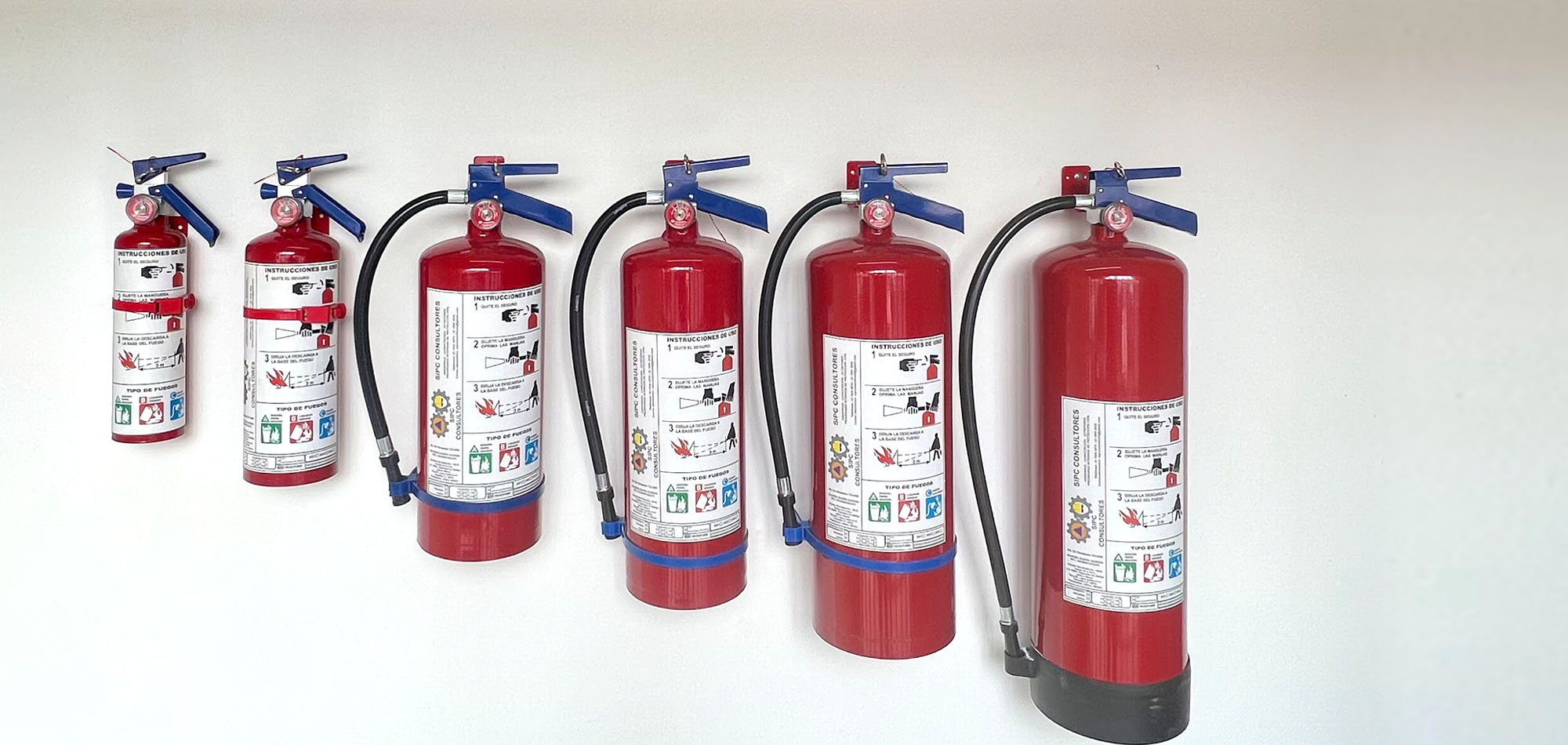 - · Extintor para fuegos clase A, B y C. Para combatir fuegos de papel, cartón, plásticos, madera, derivados de hidrocarburos y equipos eléctricos.